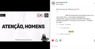 O governo de Mato Grosso publicou um vídeo direcionado a homens agressores de mulheres destacando a elevação da pena para feminic