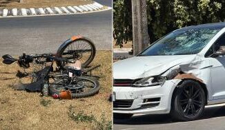 Imagens de câmera de segurança mostram o momento em que duas adolescentes, de 14 e 15 anos, em uma bicicleta elétrica, são