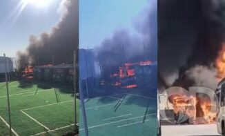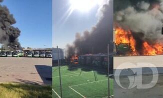 Quatro ônibus da Prefeitura de Cuiabá acabaram incendiados na tarde deste domingo (10) no pátio onde ficam recolhidos na sede da C