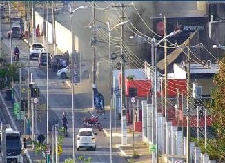 Um incêndio de grandes proporções atingiu o restaurante Japidinho, anex a um posto de combustíveis na avenida Artur Bernard