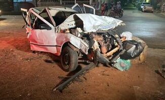Dois adultos e uma criança ficaram gravemente feridos em uma batida entre um Fiat Uno e um ônibus na noite de domingo (3), no bairro Indu