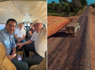 O governador em exercício Otaviano Pivetta (Republicanos) vistoria, nesta terça-feira (26), as obras de pavimenta&ccedi