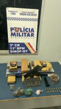 Um homem foi preso em flagrante por tráfico de drogas, receptação e posse ilegal de arma de fogo na tarde dessa segunda-feira (15