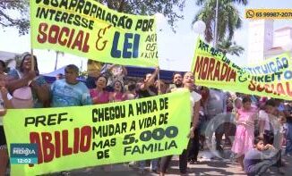 Moradores do Contorno Leste ocuparam a Prefeitura de Cuiabá, na manhã desta segunda-feira (15), protestando contra a desocupaç&at