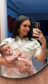 Bruna Biancardi, de 31 anos de idade, posou em frente ao espelho segurando a filha caçula, Mel, de 2 meses, em um registro compartilhado n