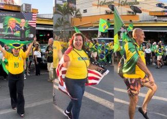 Durante o manifesto “Reaja Brasil”, realizado no domingo (7), na Praça 8 de Abril, em Cuiabá, um grupo de bolsonaristas encabeç
