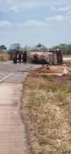 Uma pessoa morreu e outra ficou ferida após um caminhão tanque tombar no km 331 da BR-364, em Campo Verde (131 km ao Sul de Cuiabá