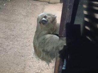 Um bicho-preguiça, de aproximadamente 15 kg, foi resgatado na noite dessa terça-feira (2), no portão de uma residência, loc