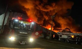 Empresa de reciclagem, localizada no bairro Coophamil, em Cuiabá, foi destruída pelo fogo na noite de segunda-feira (13). Equipe do Corp