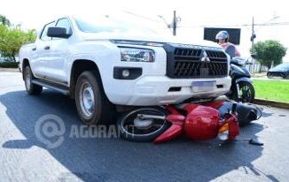 Uma mulher e uma criança ficaram feridos em um acidente envolvendo uma motocicleta e uma caminhonete na tarde de terça-feira (30), na av