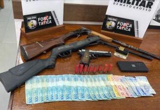 Um idoso de 69 anos foi preso por ameaçar com armas a vida da esposa e do filho em Alta Floresta (803 km ao Norte de Cuiabá) nessa quart