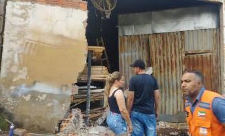 Retroescavadeira tem pane mecânica e colide em barracão de VG