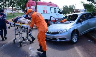 Um acidente envolvendo um carro e uma empilhadeira deixou duas pessoas feridas, na tarde desta sexta-feira (21), no bairro Sagrada Família, em