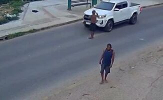 Uma câmera de segurança registrou o momento em que um homem em situação de rua foi atropelado por uma caminhonete Toyota Hi
