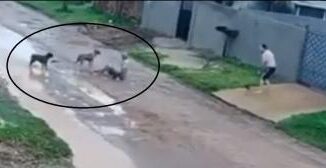 Câmera de segurança registrou o momento em que um idoso foi brutalmente atacado por dois cachorros de grande porte, enquanto caminhava na