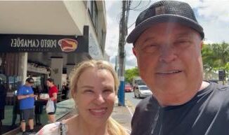 De férias em Balneário Camboriú, o bilionário do agronegócio Blairo Maggi, ao lado da esposa, mandou felicita&ccedi