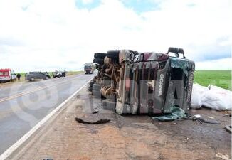 Engavetamento após tombamento deixa motorista gravemente ferido