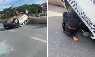 Viatura da Polícia Militar capota na Ponte Nova e causa susto a motoristas