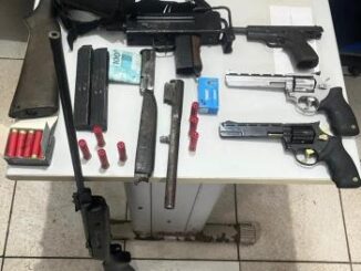 Militares da equipe da Patrulha Rural do Quartel do Comando-Geral da PM prenderam dois homens faccionados, de 32 e 20 anos, com submetralhadora, rev&o
