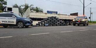 Policiais militares do 26º Batalhão de Nova Mutum, em ação conjunta com a Polícia Rodoviária Federal (PRF), pr
