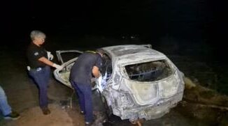 Corpo de um homem foi encontrado carbonizado, dentro de um veículo também incendiado, na noite de segunda-feira (15), na Estrada Adalgis