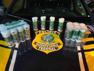 Cão farejador da Polícia Rodoviária Federal (PRF) encontrou 22 frascos de metanfetamina em cristal, durante uma fiscalizaç