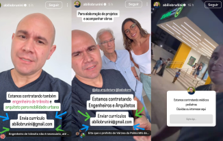 O prefeito de Cuiabá Abilio Brunini (PL) utiliza a rede social como balcão de emprego para órgãos municipais. Na segunda e
