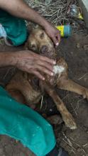 Um cachorro da raça Pitbull foi resgatado após ser encontrado enterrado vivo em um terreno no bairro Residencial Alice Novac, em Cuiab&a