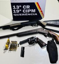 Policiais militares da Força Tática do 12º Comando Regional apreenderam, neste sábado (3.1), seis armas de fogo e 3