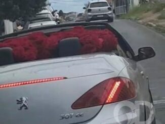 Um Chevrolet 307 CC (Coupé-Cabriolet) conversível parou na região da rua 24 de Outubro, no bairro Popular, no centro d