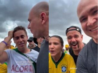 Manifestantes que participam de ato em apoio ao ex-presidente Jair Bolsonaro foram atingidos por um raio neste domingo (25), por volta de 13h, na Pra&