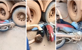 Um motociclista, ainda não identificado, ficou gravemente ferido na manhã desta quarta-feira (21) após ser prensado entre as roda