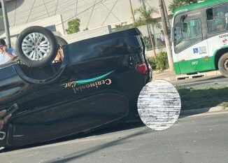 Vídeo – Carro funerário capota e corpo fica exposto na Fernando Corrêa