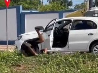 Um lavador de carros foi filmado embriago em Cuiabá, após bater o veículo de um cliente. O acidente foi registrado no Bela Vista,