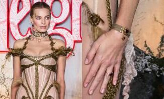 Margot Robbie usou uma peça curiosa durante o tapete vermelho da estreia britânica de O Morro dos Ventos Uivantes em Londres, nesta quint