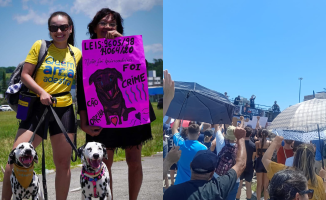 A cuiabana Sara Guarim, que está em Santa Catarina, participou do protesto realizado na cidade de São José, em defesa do cã