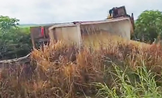 Um acidente envolvendo uma carreta carregada com grãos foi registrado nesse domingo (22), no quilômetro 656 da BR-163, nas proximidades d