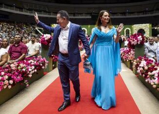Durante a celebração ‘Casamento Abençoado’, que celebrou a união de mais de 300 casais na capital, a primeira-