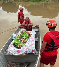 O Corpo de Bombeiros Militar de Mato Grosso (CBMMT) resgatou, na tarde desta terça-feira (3), uma idosa de 95 anos e sua filha, que ficaram ilh