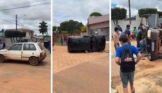 Um acidente envolvendo dois veículos terminou com um carro tombado e mobilizou equipes de resgate na manhã desta quinta-feira (26), no m