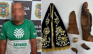 Um homem de 47 anos foi autuado pela Polícia Civil, em Jauru (425 km a oeste de Cuiabá), por violar e danificar uma imagem de Nossa Senh