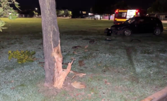 Um carro capotou após bater em uma árvore, na madrugada desta quinta-feira (05), na rotatória das avenidas Palmeiras e Ingá