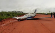 Um avião de pequeno porte com cinco pessoas a bordo realizou um pouso forçado na tarde desta quinta-feira (26), no aeroporto municipal d