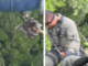 Bombeiro usa técnica de rapel para resgatar homem isolado em mata fechada