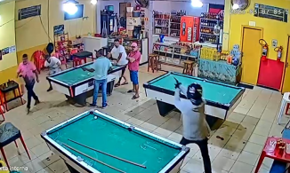 Câmeras de segurança flagraram momento em que homem é morto a tiros em bar