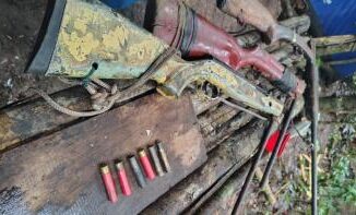 Policiais militares da Força Tática do 8º Comando Regional prenderam dois homens, de 51 e 68 anos, por invasão de terra e ex