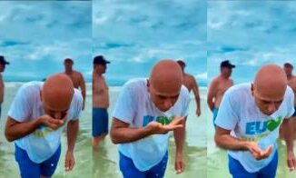 O prefeito de Guarujá, Farid Madi (Podemos), publicou um vídeo nas redes sociais mergulhando e também tomando a água do ma