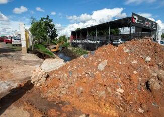 A drenagem do Córrego do Gambá no bairro São Matheus teve início nesta segunda-feira (13). A ação realizada