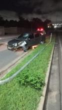 Motorista ainda não identificado derrubou um poste de energia, na madrugada deste domingo (12), na Estrada da Guarita, sentido Mário And