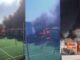 Vídeos divulgados na internet mostram o tamanho das chamas no local. Em uma das imagens, uma pessoa fala em quatro veículos já consumidos pelo fogo. Assista: